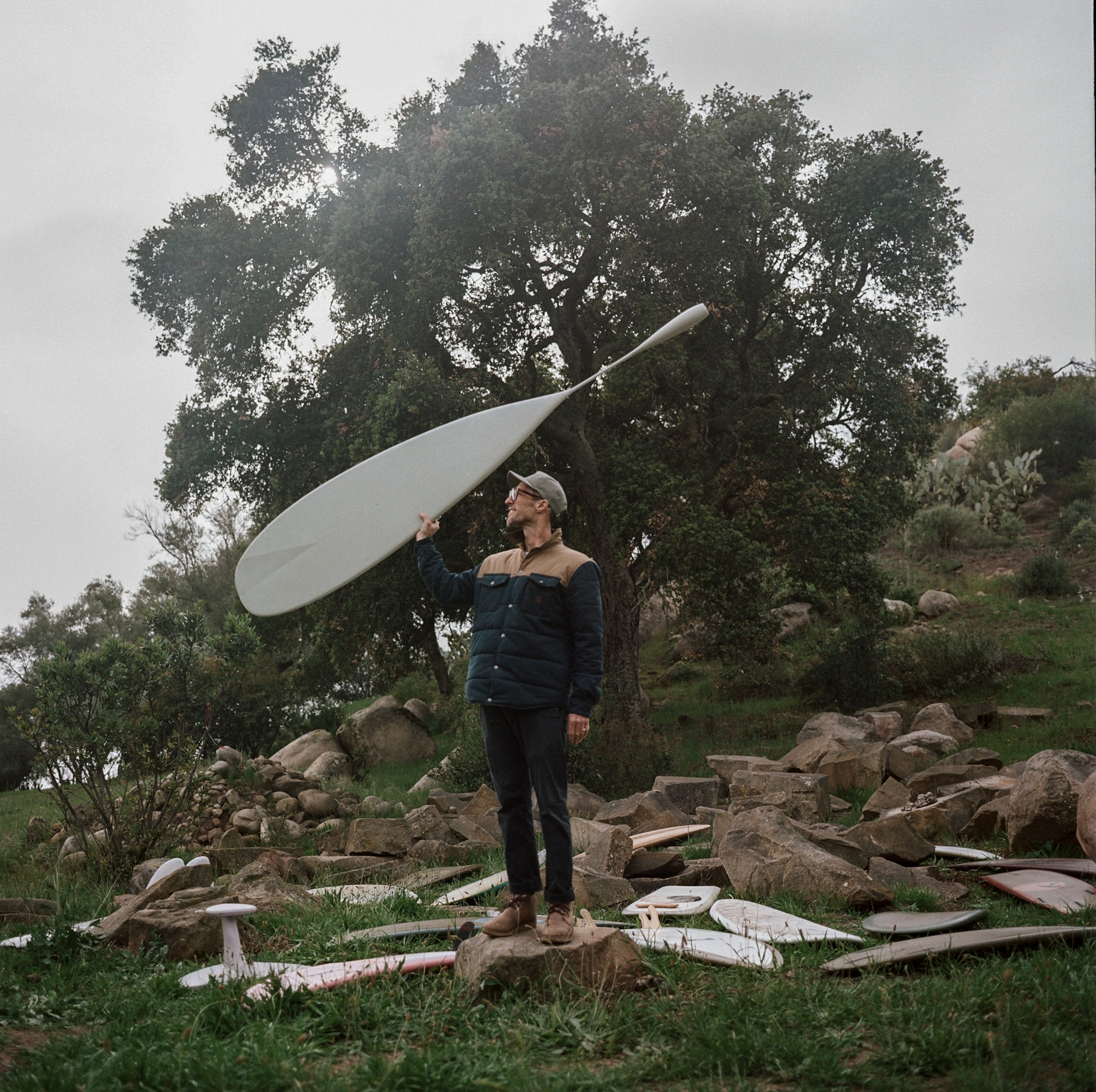 Neste ano, a jornada levou o time para o alto das montanhas da Califórnia, no interior do lendário Rincon Point. Instalados em um amplo rancho cercado por carvalhos e céus abertos, os dias se dividiram entre sessões de shape, laminação, surf e histórias compartilhadas ao redor da fogueira até altas horas.